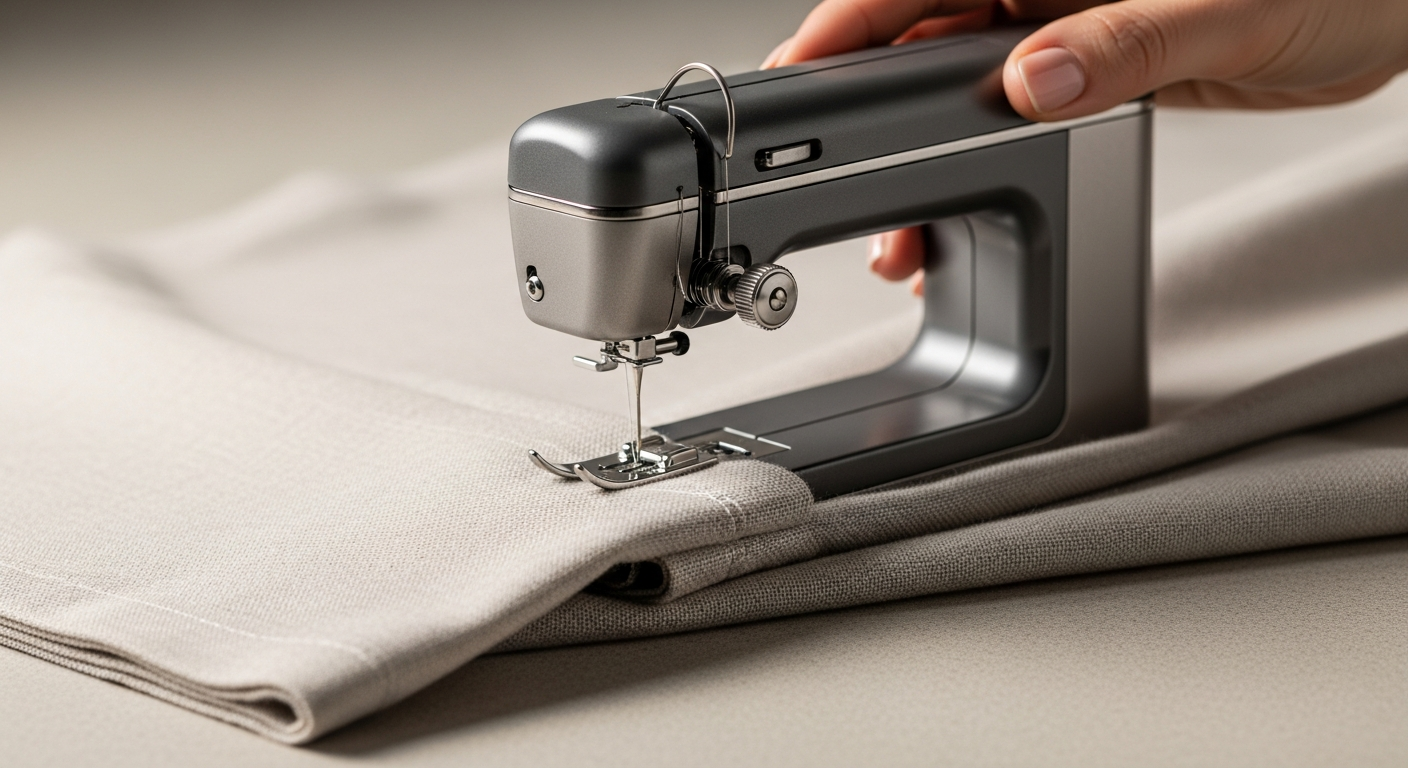 でも、このハンディミシンなら、「よし、やるぞ!」と気合いを入れる必要がありません。例えば、朝食中に旦那さんのスラックスの裾がほつれているのに気づいても、「あ、これなら食後にサッと直せるな」と思えるんです。ダイニングテーブルに広げて、ほんの数分で補修が完了する。この時短と手軽さは、40代以上の私たちにとって、何物にも代えがたい魅力ですよね。