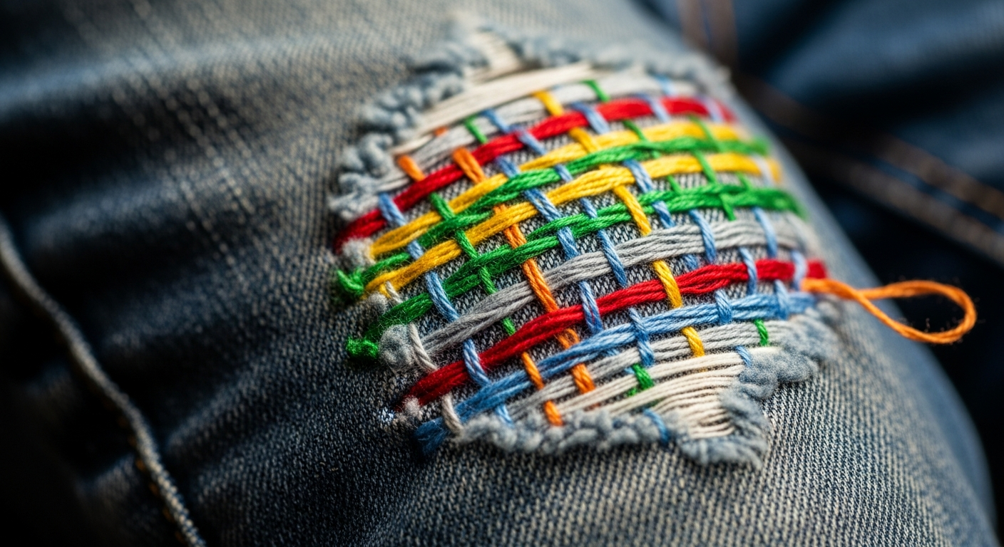 - ✅ カラフルな糸を使えば、補修跡が逆におしゃれなアクセントになる